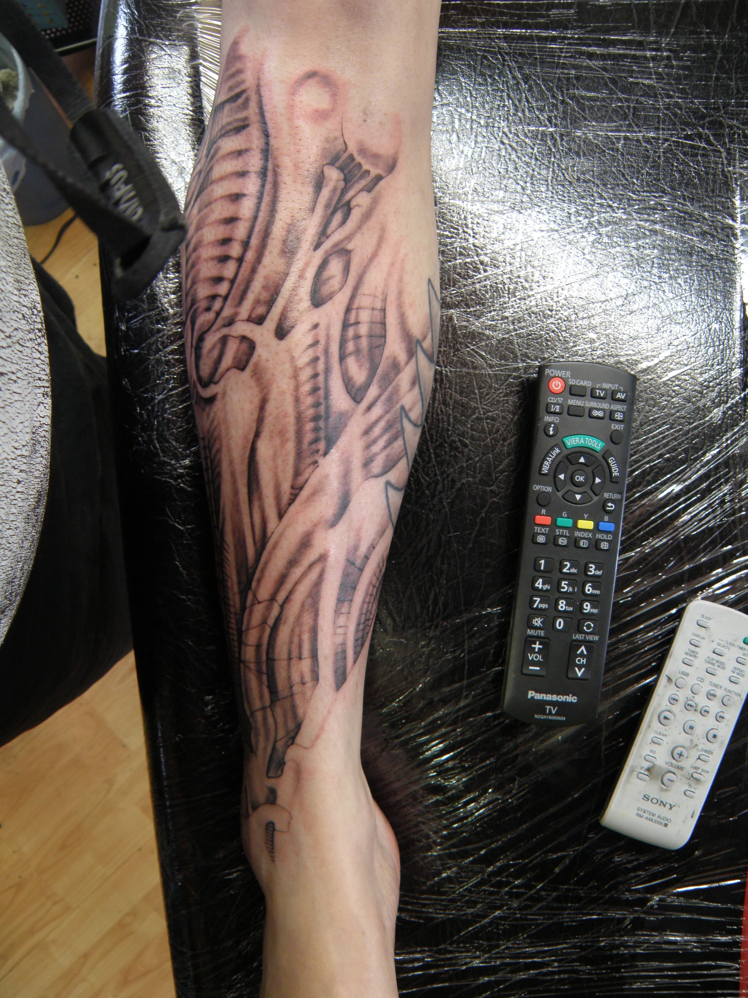 I specialize in Biomechanic and Fantasy type stuff but I'm open to doing anything even the gay stuff ie not homosexual but girly stuff, some of that can be quite enjoyable to tattoo